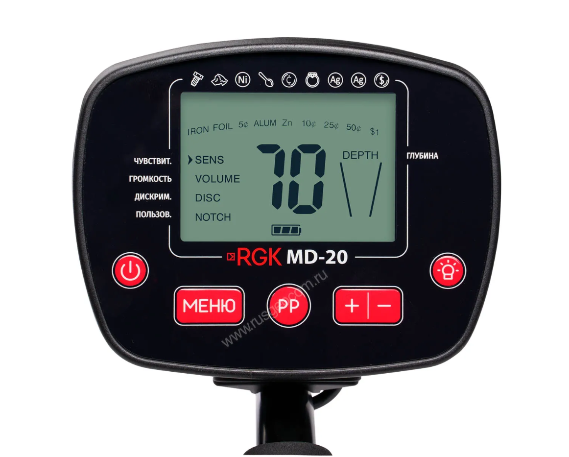 Эта модель комплектуется водонепроницаемой моно-катушкой диаметром 26 см, которая отличается больше, чем у датчиков формата DD, глубиной обнаружения.