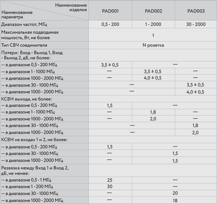 Выходное сопротивление разветвителя согласовано с входными сопротивлениями антенных входов приемных устройств;