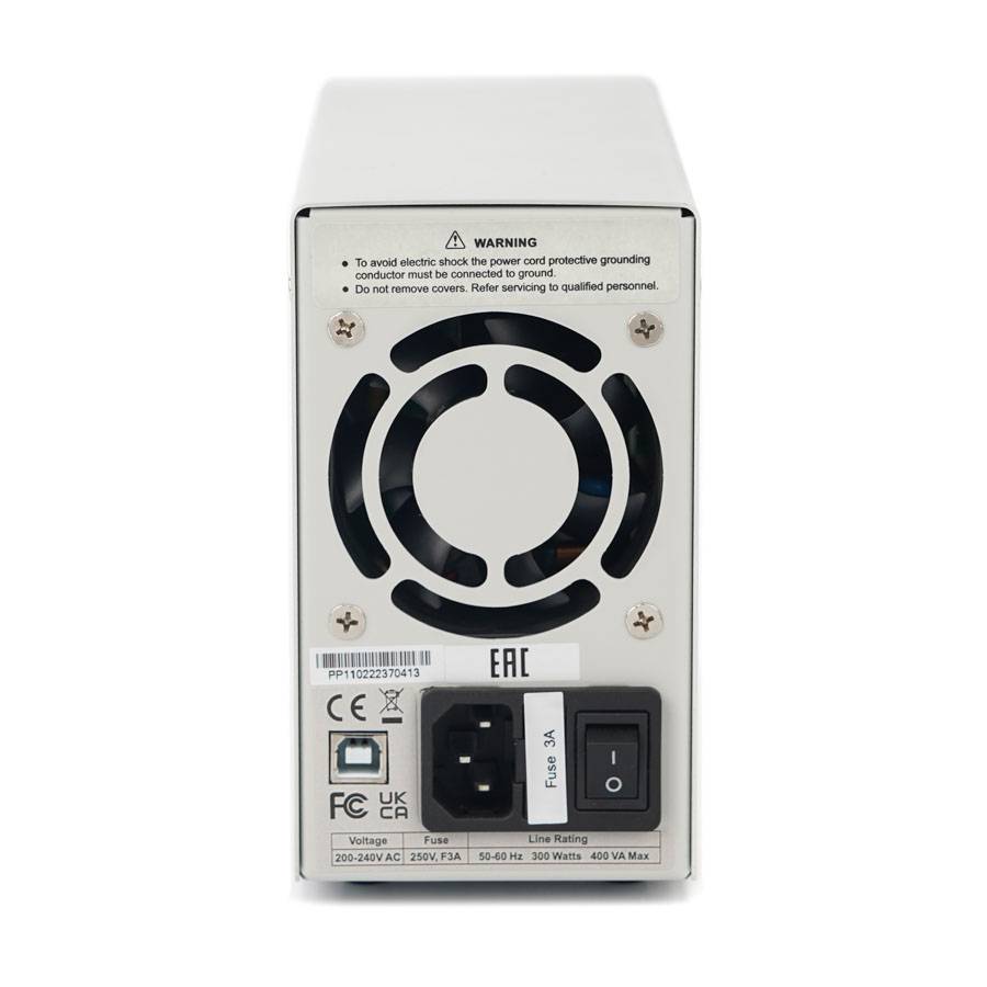 Устройство оснащено одним основным каналом, способным обеспечивать напряжение до 60 вольт при токе до 5 ампер. Несмотря на меньший ток по сравнению с моделью PP1103, эта модель обладает более высокой максимальной мощностью — до 300 ватт, что делает её подходящей для задач, требующих значительной энергетической отдачи при умеренном токе. Такое соотношение параметров особенно удобно при работе с нагрузками, где важна большая мощность при сохранении стабильного выходного напряжения.