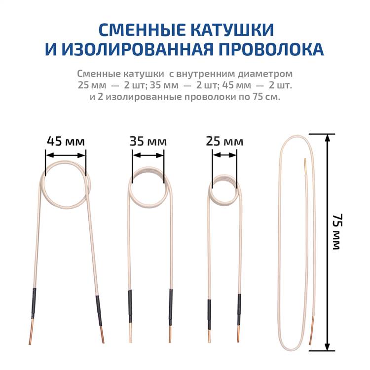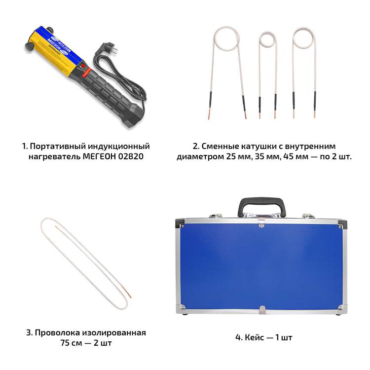 Для универсальности применения нагреватель оснащён съёмными насадками различного диаметра, которые легко заменяются в зависимости от типа и размеров детали. В комплекте поставляется восемь катушек, позволяющих адаптировать прибор под конкретные задачи. Устройство также комплектуется прочным кейсом для удобного хранения и транспортировки, что делает его незаменимым помощником как для профессионалов, так и для любителей.