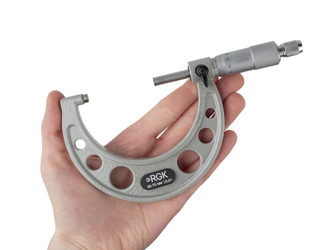 RGK MPM-75 – механический высокоточный прибор со скобой полукруглой формы. Модель предназначена для измерения наружных размеров в пределах от 50 до 75 мм.